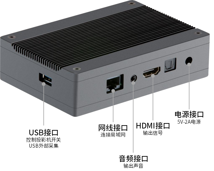 提供多種接口,多種功能,usb接口可支持控制投影機(jī)開關(guān)機(jī)