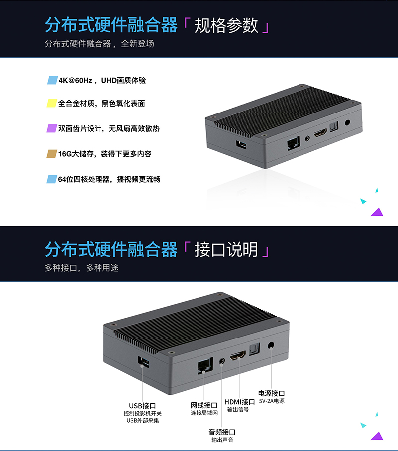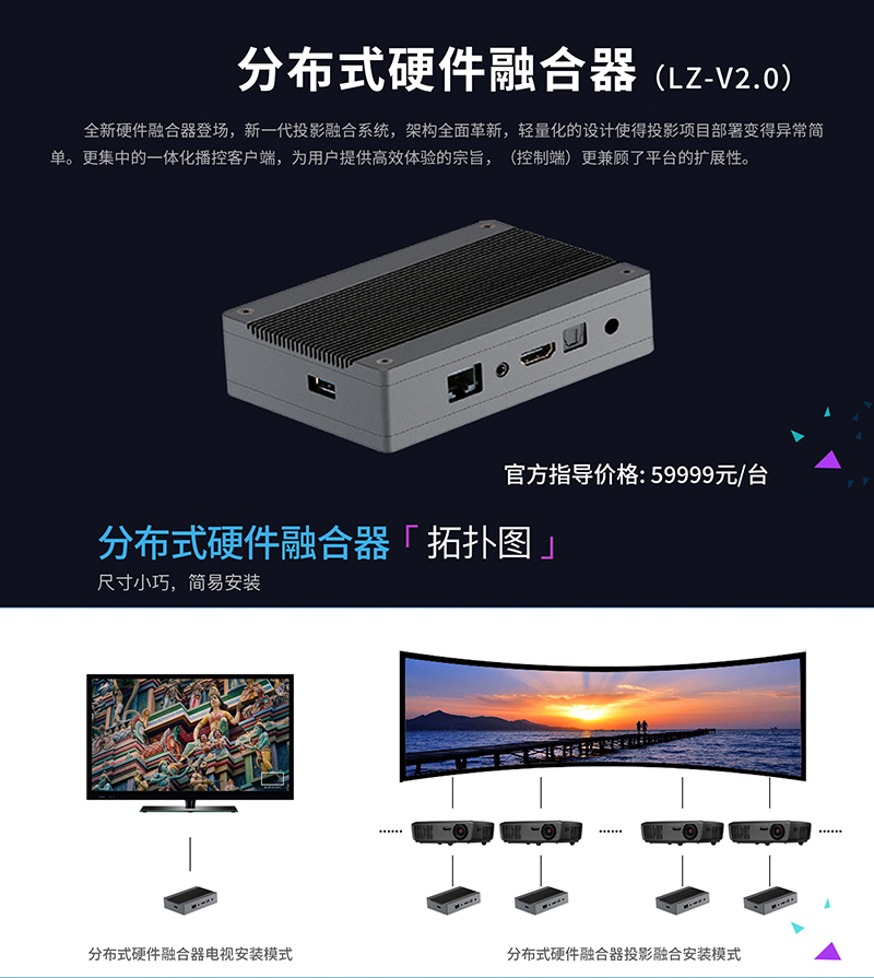 分布式硬件融合器為新一代的投影融合系統(tǒng),架構(gòu)全面革新,輕量化的設(shè)計