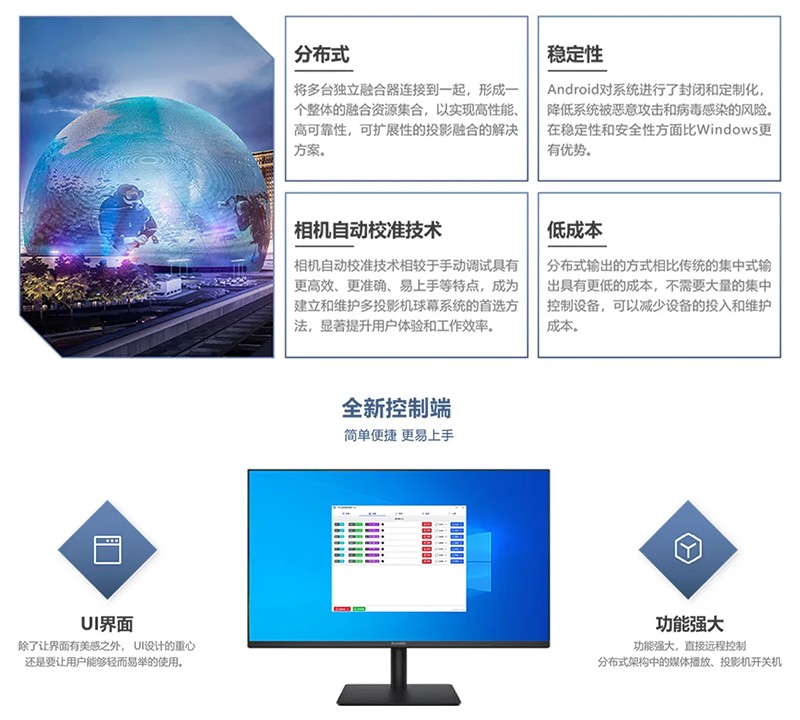 更集中的一體化播控客戶端,為用戶提供高效體驗(yàn)的宗旨,通過無線或有線連接,即可完成調(diào)試、上傳視頻 / 圖片內(nèi)容及媒體的播控。
