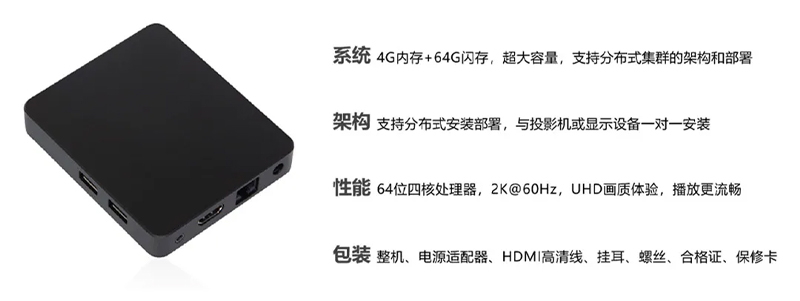 各種投影場景分布式方案,部署簡單,無電腦、無長傳、無機(jī)房、無人值守,投影機(jī)和播放設(shè)備自動定時開關(guān)。