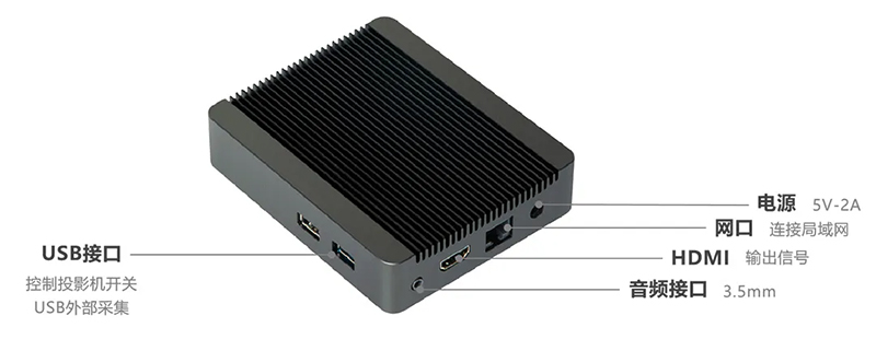 提供多種接口,多種功能,USB接口可支持控制投影機開關(guān)機也可支持HDMI或HD/3G-SDI視頻信號采集輸入。