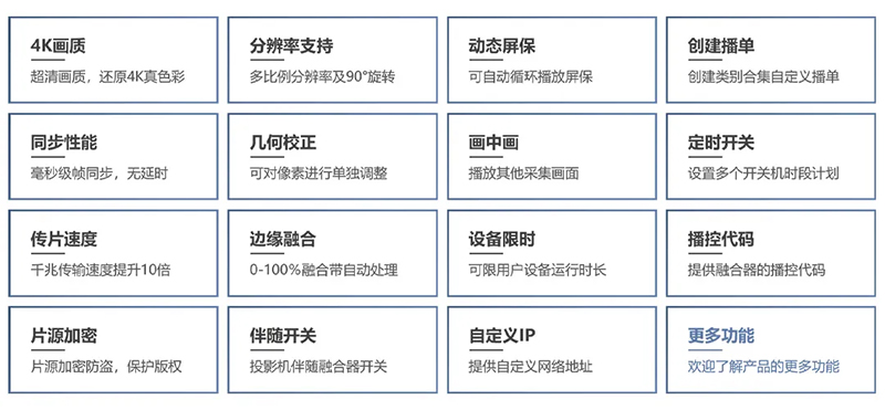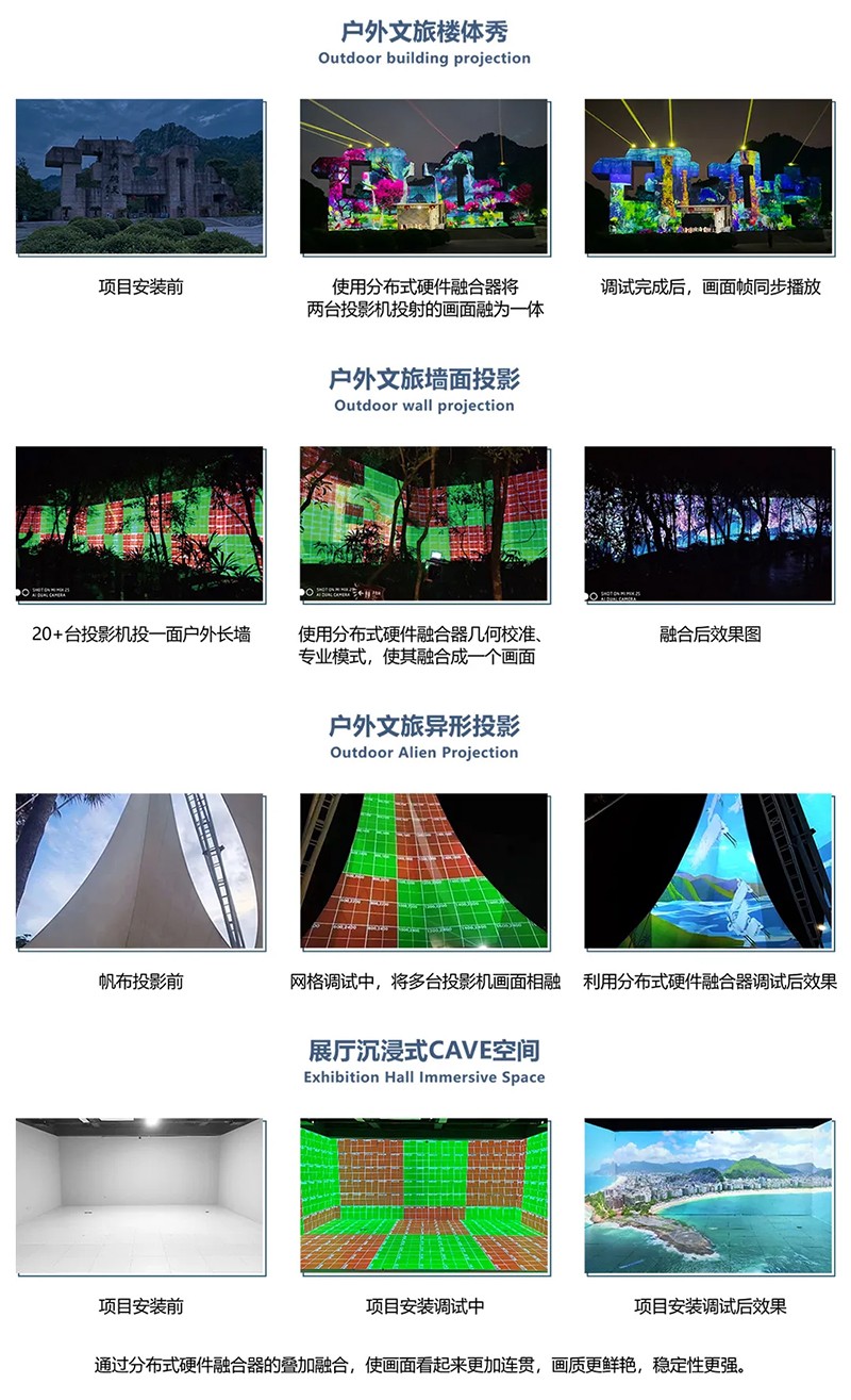 分布式硬件融合器(專業(yè)版)是我司自主研發(fā)的一款產(chǎn)品。在不需要互動的情況下,可以采用分布式硬件融合器方案進行畫面融合,無需再使用電腦,無需設(shè)置機房,不占位置,直接安裝到投影設(shè)備旁即可,價格相比傳統(tǒng)方案更加實惠。分布式硬件融合器是我司在2023年新上市的全新融合技術(shù),支持7*24小時不間斷工作,擺脫電腦的不穩(wěn)定的束縛。