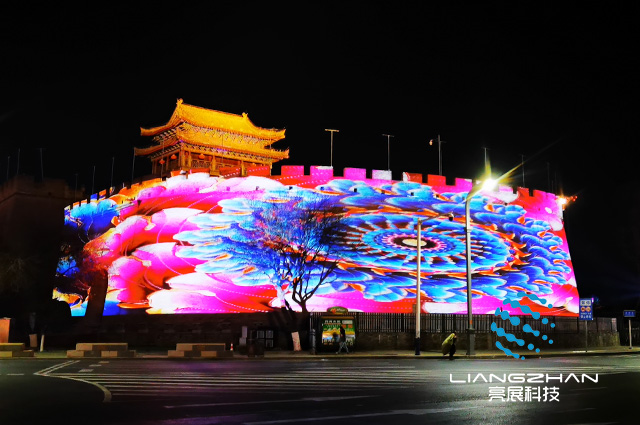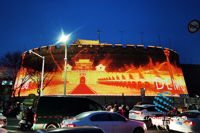 本次項目位于陜西榆林,運用多臺投影機(jī)和分布式硬件融合器相互配合,將巨幅畫面投射在城墻上,吸引眾多游客駐足觀看!