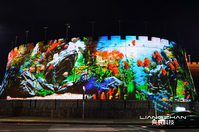 數(shù)字內(nèi)容定制:每一個建筑都有不同的形狀,而想要讓建筑投影達(dá)到好的效果,就需要根據(jù)建筑本身的形狀定制一個創(chuàng)意新穎的影像內(nèi)容,讓這個戶外投影能夠更加出色。
