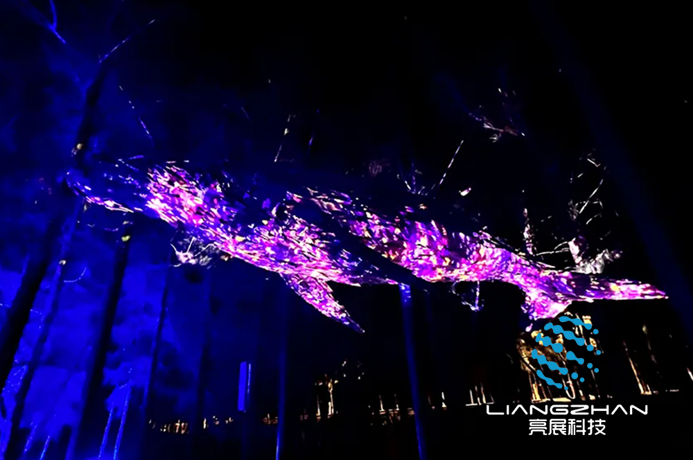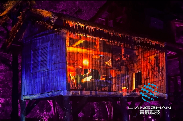 從這跨入現(xiàn)實(shí)與森海夢(mèng)境的大門,樹影婆娑,森霧濃郁。以木屋為載體,利用光影技術(shù)讓木屋“活”了起來(lái)~