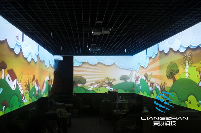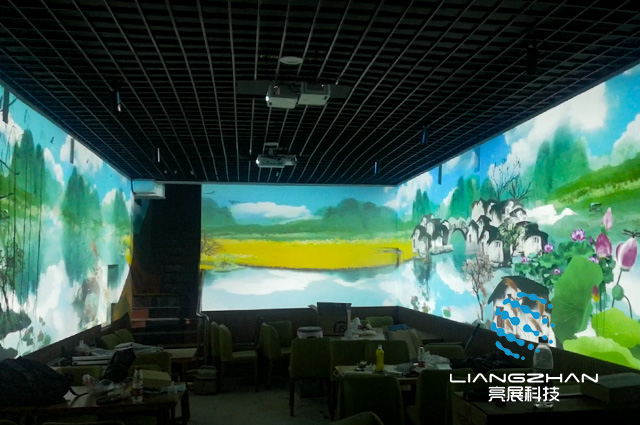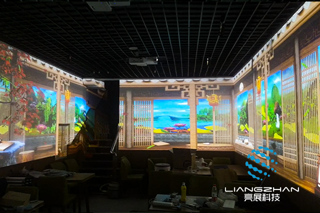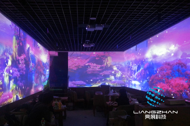 全息光影餐廳是利用全息投影技術(shù)將虛擬場(chǎng)景投映在特定就餐空間場(chǎng)景內(nèi),以數(shù)字化形象代替?zhèn)鹘y(tǒng)裝飾,降低裝修營(yíng)運(yùn)成本。融合場(chǎng)景氛圍、動(dòng)作捕捉,打造餐廳包廂、大廳、地面等場(chǎng)景,仿若整個(gè)餐廳變身虛擬世界,感受魚兒在身邊游動(dòng)、鮮花在眼前盛開、浩瀚天際的海水迎面打來(lái)所帶來(lái)的視覺刺激。