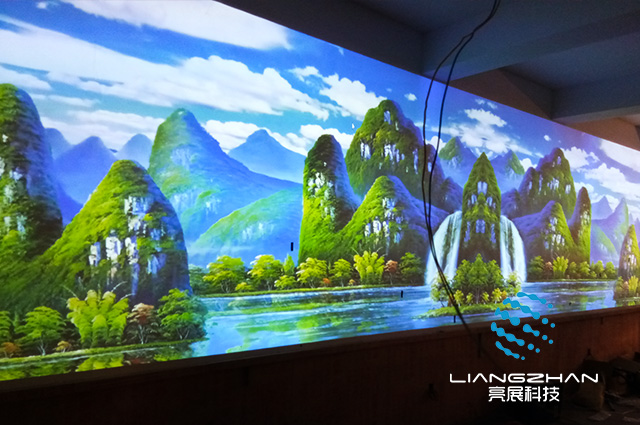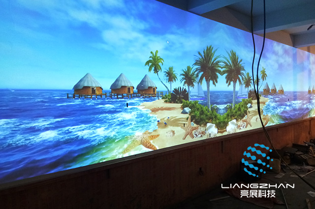 通過自主研發(fā)的投影拼接技術(shù)可使一組投影機協(xié)同工作,最終投射出一整幅無差異的巨幅畫面,也可采用多臺投影儀組成環(huán)形投影屏幕、弧形投影屏等,屏幕通常有100~360弧度不等,系統(tǒng)通過巨大的屏幕、逼真的畫面、真實的杜比環(huán)繞立體聲系統(tǒng),使參與者充分體驗一種大畫面顯示帶來的視覺感受。