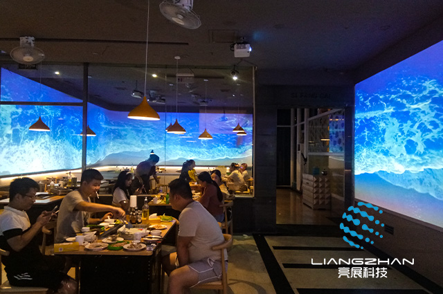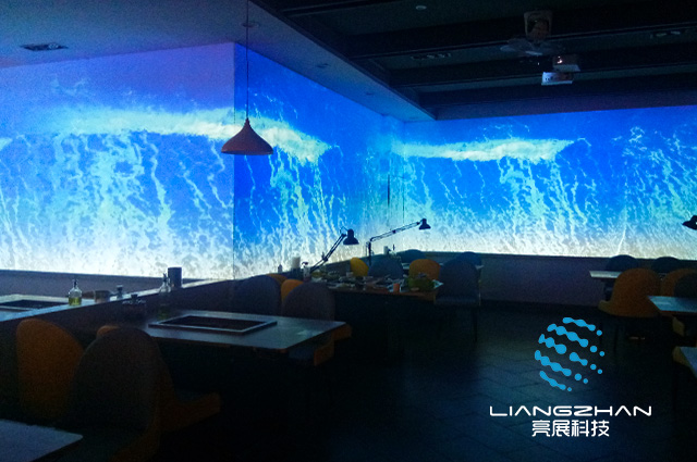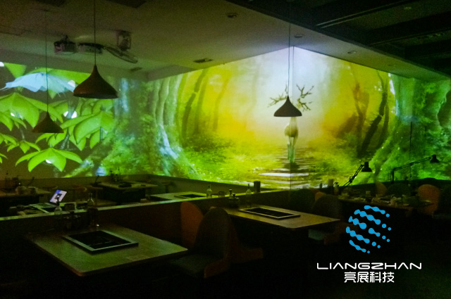 全息餐廳也叫5D餐廳、沉浸式餐廳、光影餐廳、5D光影網(wǎng)紅餐廳,都是高科技時代的產(chǎn)物,運用工程投影機把3D視頻畫面投影到墻面,打破傳統(tǒng)裝修理念,是一種可以讓人們聽覺同步的沉浸式用餐體驗,讓客人餐前無聊,餐前餐后不再是低頭族。全息餐廳讓你對吃飯有了不一樣的意義。