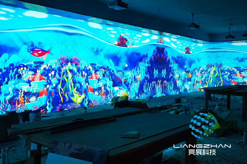 更高的分辨率:多個(gè)投影儀可以同時(shí)投影在同一表面上,這意味著可以使用更高的分辨率來呈現(xiàn)圖像或視頻,從而提高圖像的清晰度和細(xì)節(jié)。