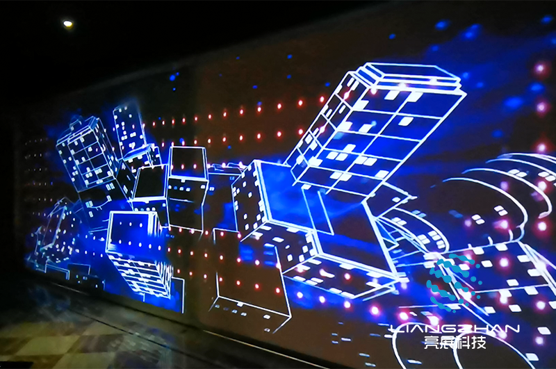 本次項(xiàng)目位于昆山,利用多臺(tái)投影機(jī)和分布式融合器相配合打造出一個(gè)顯示尺寸更大、畫面分辨率更高且視覺效果更為震撼的巨幅畫面!