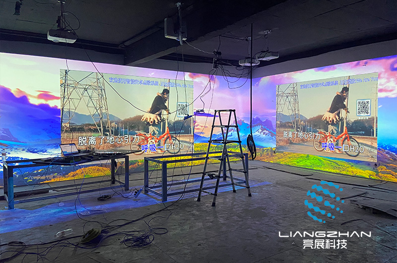本次項(xiàng)目位于遼寧撫順,利用多臺(tái)投影機(jī)和分布式融合器相配合打造出一個(gè)顯示尺寸更大、畫面分辨率更高且視覺效果更為震撼的巨幅畫面!
