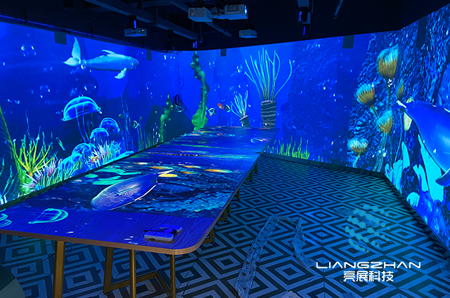 相較于傳統(tǒng)餐廳,全息光影餐廳擁有較強的新鮮感,我們都知道,傳統(tǒng)餐廳數(shù)十年不變的就餐環(huán)境,在科技持續(xù)發(fā)展的當(dāng)下,越來越難以滿足需求。全息光影餐廳場景內(nèi)的動態(tài)主題視覺,包含大海、森林、城堡、星際、花海等數(shù)百種場景隨心切換,不同場景下的虛擬形象與用戶肢體變化產(chǎn)生聯(lián)動,帶來極致的新鮮感。