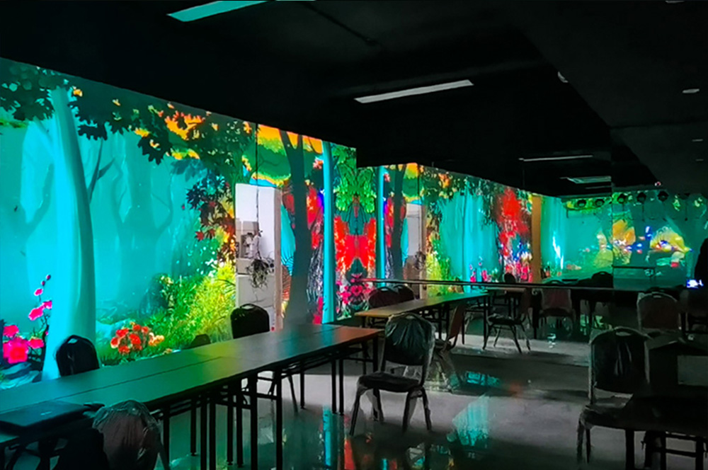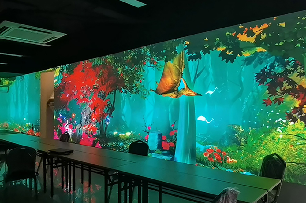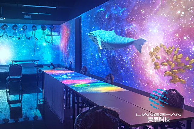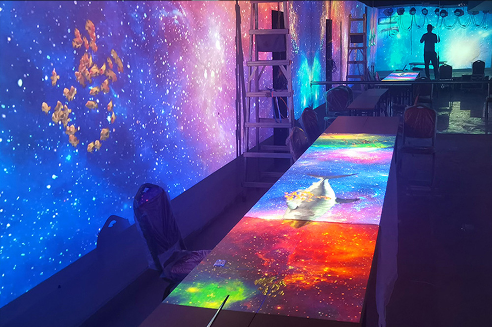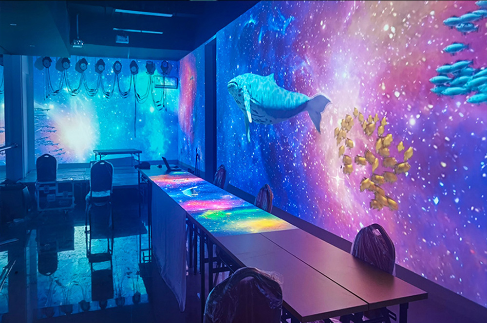 什么是全息光影餐廳?全息光影餐廳有何特色?全息光影餐廳是利用全息投影技術(shù)將虛擬場景投映在特定就餐空間場景內(nèi),以數(shù)字化形象代替?zhèn)鹘y(tǒng)裝飾,降低裝修營運成本。融合場景氛圍、動作捕捉,打造餐廳包廂、大廳、地面等場景,仿若整個餐廳變身虛擬世界,感受魚兒在身邊游動、鮮花在眼前盛開、浩瀚天際的海水迎面打來所帶來的視覺刺激。