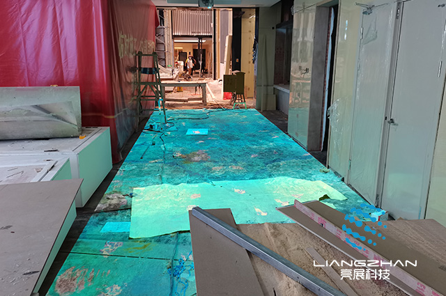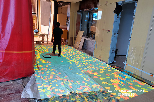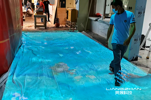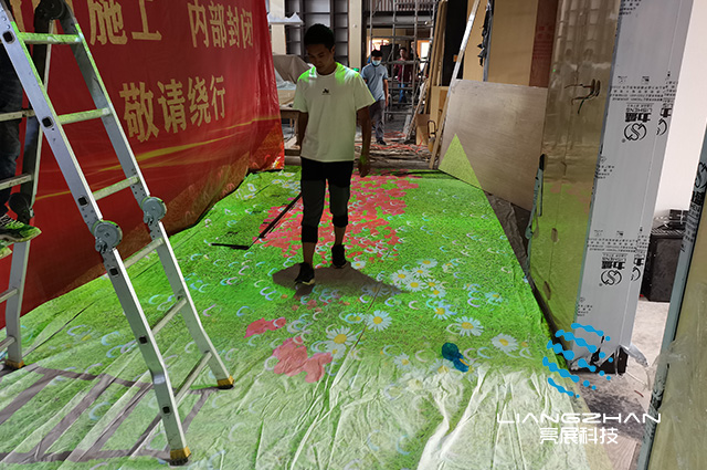 地面互動投影是集虛擬仿真技術(shù)、圖像識別技術(shù)于一身的互動投影項(xiàng)目。該項(xiàng)目包括水波紋、翻轉(zhuǎn)、碰撞、擦除、避讓、跟隨等表現(xiàn)形式,觀眾可以通過身體動作來與地面的圖像進(jìn)行互動,各種特效影像在腳下綻放,帶來一種全新的奇特的體驗(yàn)。