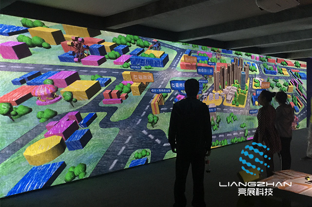 互動(dòng)投影系統(tǒng)又叫多媒體互動(dòng)投影,分為地面互動(dòng)投影、墻面互動(dòng)投影、桌(臺(tái))面互動(dòng)投影,它采用計(jì)算機(jī)視覺(jué)技術(shù)和投影顯示技術(shù)來(lái)營(yíng)造一種奇幻動(dòng)感的交互體驗(yàn)。觀眾可以用肢體與投影畫面中的內(nèi)容進(jìn)行互動(dòng),具有很高的新奇性和觀賞性,可以很好的起到活躍展廳氣氛,增加展示的科技含量,提高展示的現(xiàn)場(chǎng)人氣度。