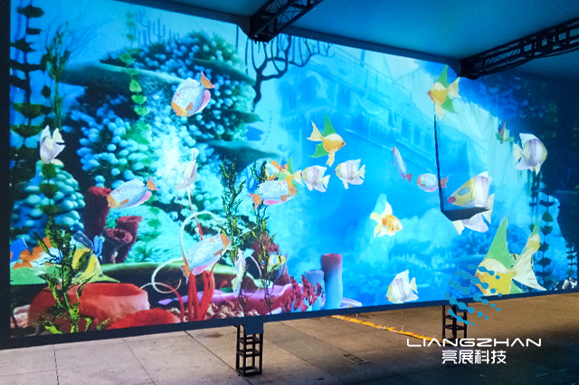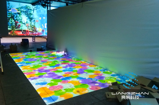 體感互動投影分別為墻面投影互動和地面投影互動及桌面互動投影。它是一種基于虛擬現(xiàn)實技術(shù)與動感捕捉技術(shù)的視覺呈現(xiàn),通過對體驗者肢體動作的捕捉與投影畫面進行完美的無縫對接,形成趣味互動,讓大眾從視覺上和體驗上帶來了全新的新奇感受。