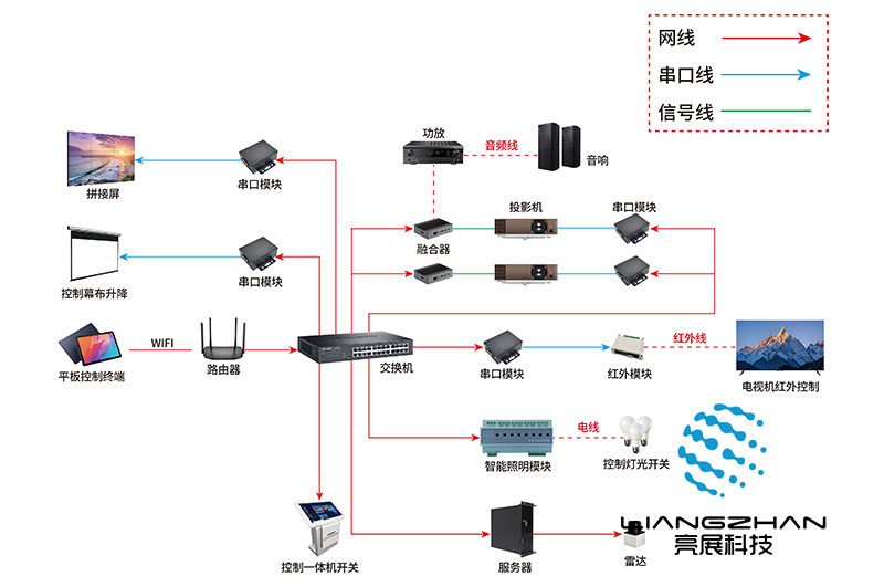 根據(jù)客戶實際展項設(shè)備情況,控制各類聲、光、電、視,即可實現(xiàn)各個展廳展區(qū)集中控制,分區(qū)控制、分項控制、級聯(lián)控制、視頻燈光聯(lián)動控制等方式。
