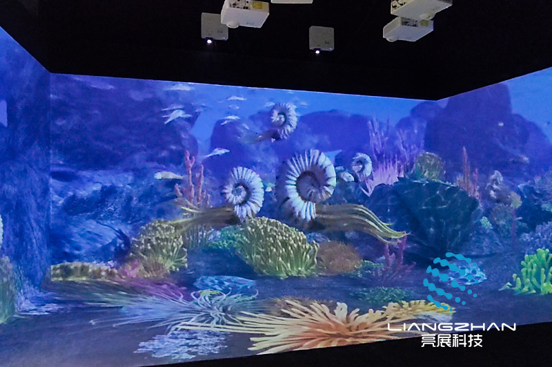 本次項目運用多臺投影機及分布式硬件融合器打造沉浸式CAVE空間。