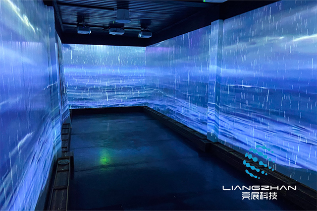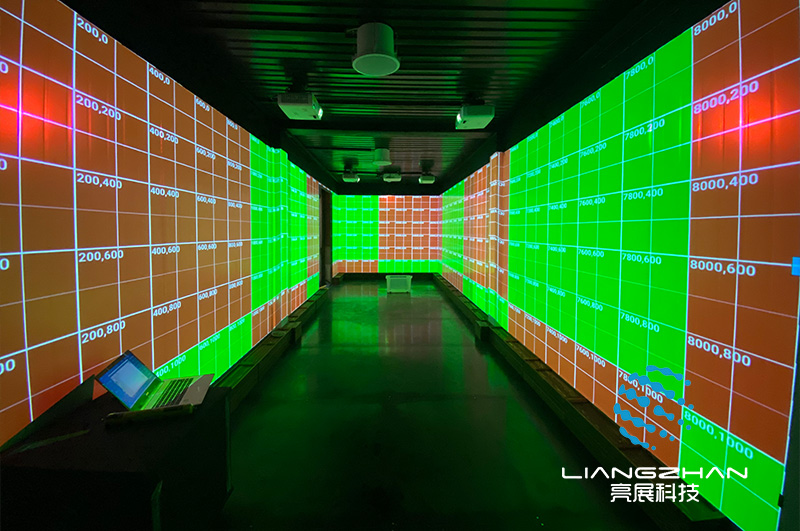 本次項目位于蘇州昆山,利用多通道投影融合技術(shù)打造沉浸式全息光影空間;5臺投影機投出的圖像經(jīng)過分布式硬件融合器的處理,從而實現(xiàn)一整幅完整無縫的畫面。