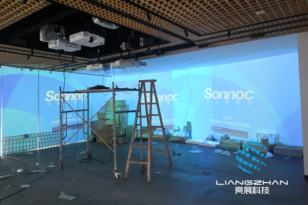 沉浸式空間投影是通過多通道融合技術(shù)將多臺(tái)投影機(jī)的畫面無(wú)縫拼接融為一個(gè)畫面,通過空間結(jié)構(gòu)和畫面的高度融合達(dá)到沉浸式效果,使得觀眾置身于影片之中。沉浸式投影從各個(gè)層面包圍著觀眾, 能夠全面的覆蓋觀眾的視角,達(dá)到身臨其境的沉浸感,是普通投影所不能實(shí)現(xiàn)的。
