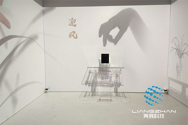 本項目運用互動投影和投影融合等前沿技術(shù),精心打造沉浸式光影空間;并結(jié)合珍貴的文物文獻以及當代藝術(shù)家以梅蘭芳手勢為主題的再創(chuàng)作作品,全方位展現(xiàn)梅蘭芳先生氣韻萬千、情思起伏的獨特手勢藝術(shù)之美,讓觀眾在光影交錯中深刻感受京劇藝術(shù)的迷人魅力和深厚底蘊。