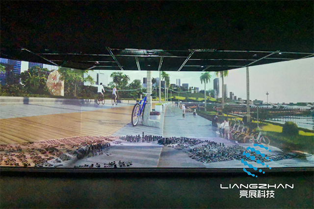 數(shù)字沙盤可以分為燈光實(shí)景沙盤、全息白膜沙盤和360全息沙盤。燈光實(shí)景沙盤可以實(shí)現(xiàn)傳統(tǒng)沙盤和大屏進(jìn)行聯(lián)動(dòng)展示,沉浸感更強(qiáng),全息白膜沙盤則無(wú)需佩戴 3D 眼鏡就能看到立體的 3D 效果。360全息沙盤可360度觀看,能實(shí)現(xiàn)三維畫面懸浮在柜體實(shí)景中的空中成像。本次項(xiàng)目打造的是全息白膜沙盤,立體感強(qiáng),極具視覺(jué)沖擊力!