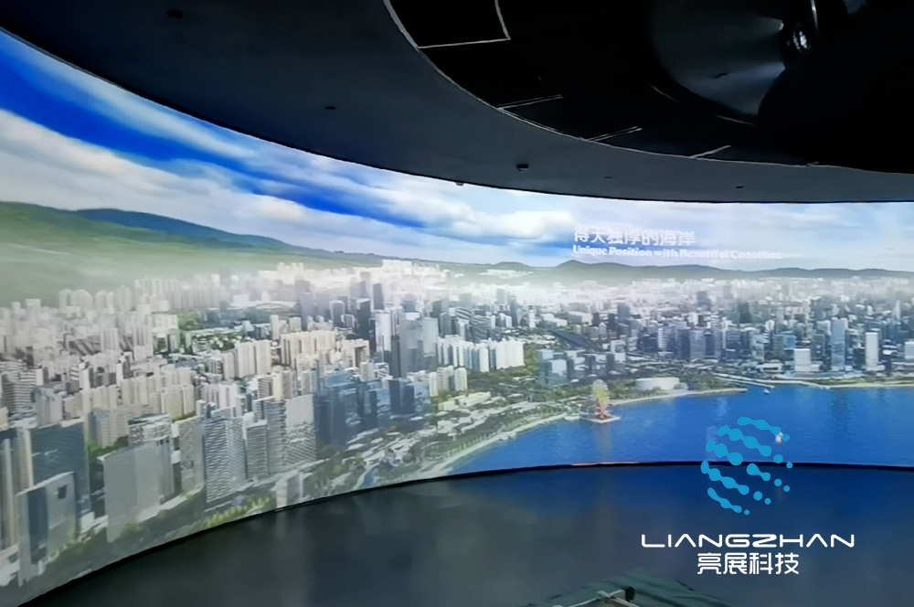 弧幕投影是一種通過(guò)投影融合技術(shù)無(wú)縫拼接超大投影圖像的弧屏顯示系統(tǒng),任何弧度都可以定制。是多功能投影和圖像邊緣融合的結(jié)合,它將多幅畫面融合成一個(gè)超大高清畫面??梢愿鶕?jù)現(xiàn)場(chǎng)的具體情況進(jìn)行個(gè)性化的設(shè)計(jì)和建設(shè),創(chuàng)造出身臨其境、震撼人心的弧形屏幕效果。