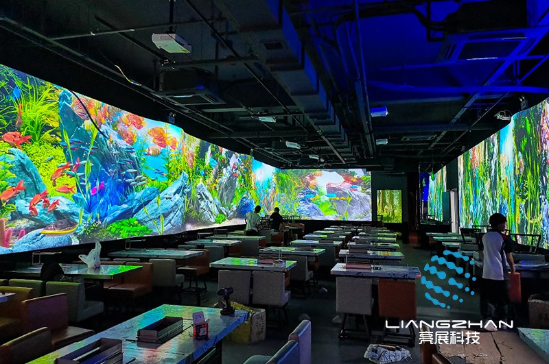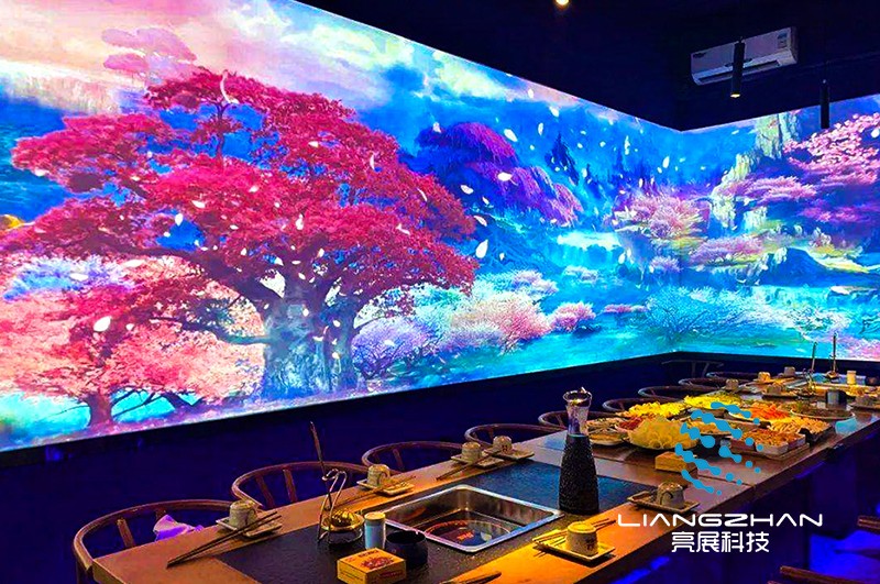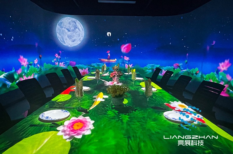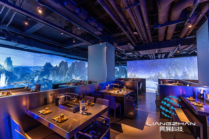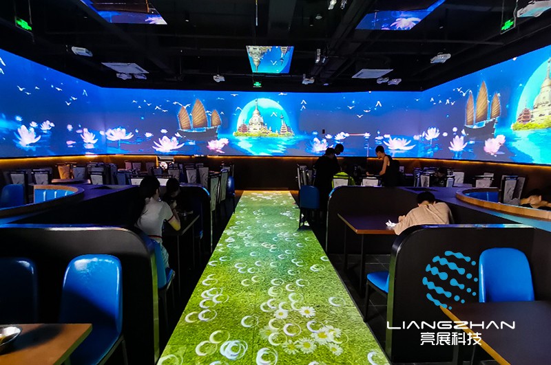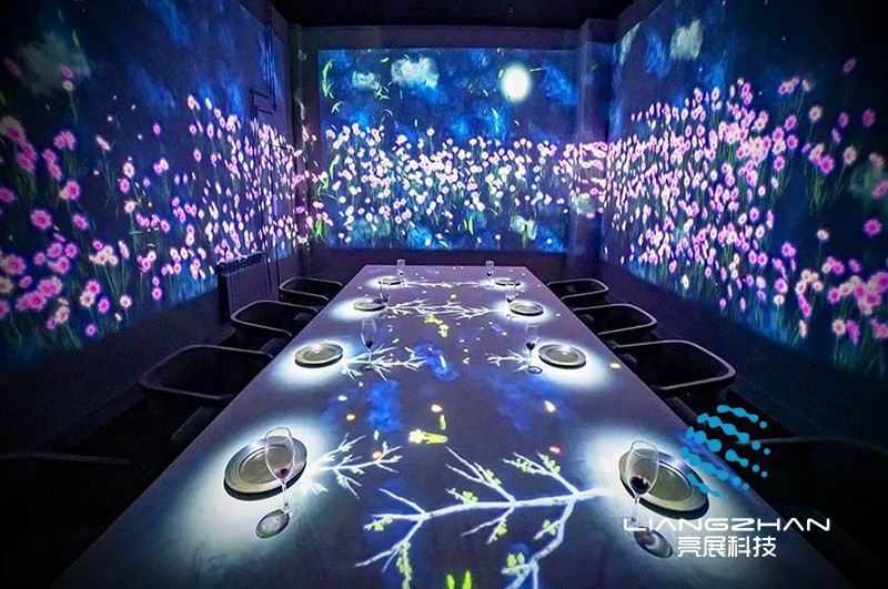 1、沉浸式投影能打造別具一格的主題餐廳,一次身臨其境的用餐體驗,可投影出不同風(fēng)格的畫面,打造出不同主題的餐廳。