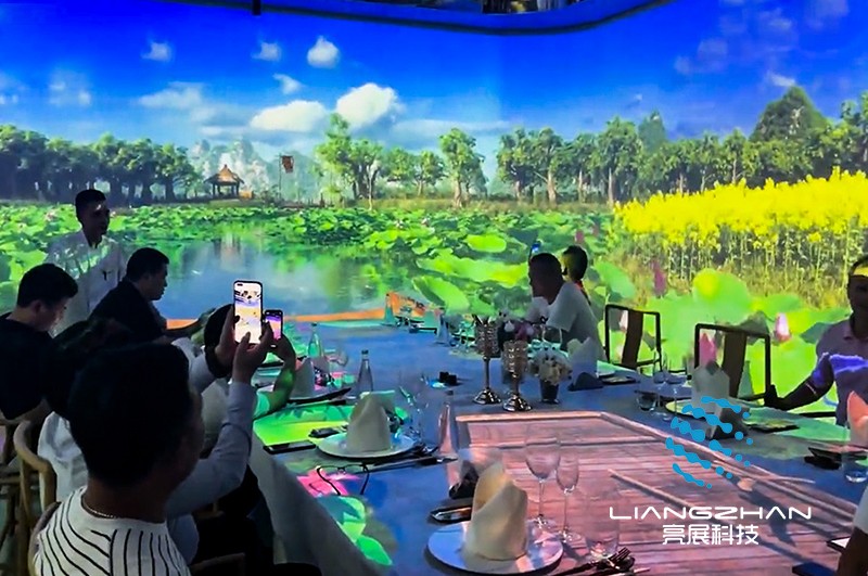 3、有別于傳統(tǒng)呆板的用餐環(huán)境,打造360°沉浸式投影餐廳,顧客在吃飯的時候可以體驗一場視覺秀。