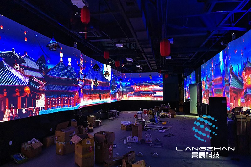 大廳墻面投影運用多臺投影,通過我司自主研發(fā)的融合器,將多幅畫面融合成一個完整的、高清的巨幅畫面;帶給觀眾前所未有的視聽體驗。