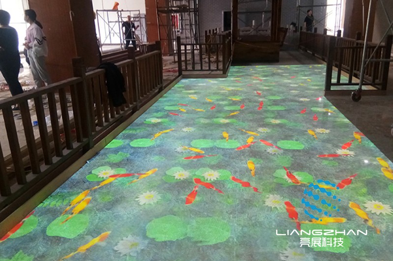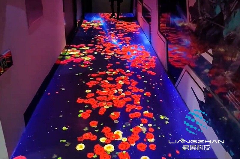 當(dāng)人們走過的時候,地面上的影像會發(fā)生奇妙的變化,產(chǎn)生各種神奇的景象,讓人們仿佛置身于真實的環(huán)境中。將人帶入一個奇妙夢幻的世界:在水面上行走,水波蕩漾;在草地上行走,花朵隨著腳步綻放;在樹林里漫步,驚起飛鳥陣陣等等。效果可以根據(jù)實際需求進行定制。