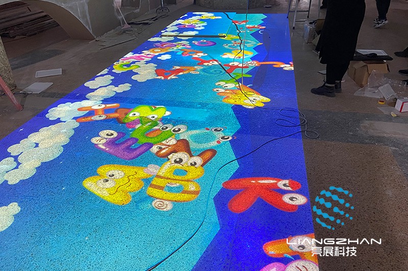 地面互動投影是一種新型的展示方式,可用投影或大屏將普通的地板轉(zhuǎn)換成令人為之驚奇的互動地面,利用捕捉設(shè)備對人們的動作進行捕捉,然后分析動作,將分析出來的數(shù)據(jù)和互動系統(tǒng)結(jié)合,從而實現(xiàn)互動體驗。