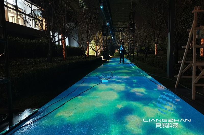 戶外地面互動投影,一般用于景區(qū)夜游、城市廣場、商業(yè)廣場、小區(qū)花園、公園等地。作為一種全新的互動展示方式,通過視頻內容等創(chuàng)意,讓體驗者親自參與進來,能大大提高景區(qū)、景點的知名度。