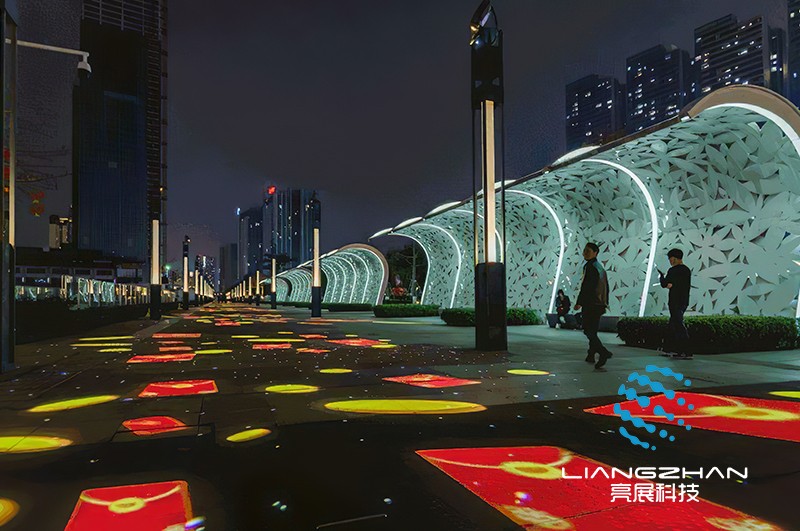 當地面互動投影技術應用在景區(qū)夜游場景中,可以根據景區(qū)不同的場景、不同的形態(tài)空間應用不同的主題場景,每一步都充滿趣味性。將互動游戲與地面投影相結合,滿足視覺體驗的同時增強趣味性、可以加深用戶對景區(qū)的印象,產生持續(xù)性消費,提升景區(qū)經濟效益。