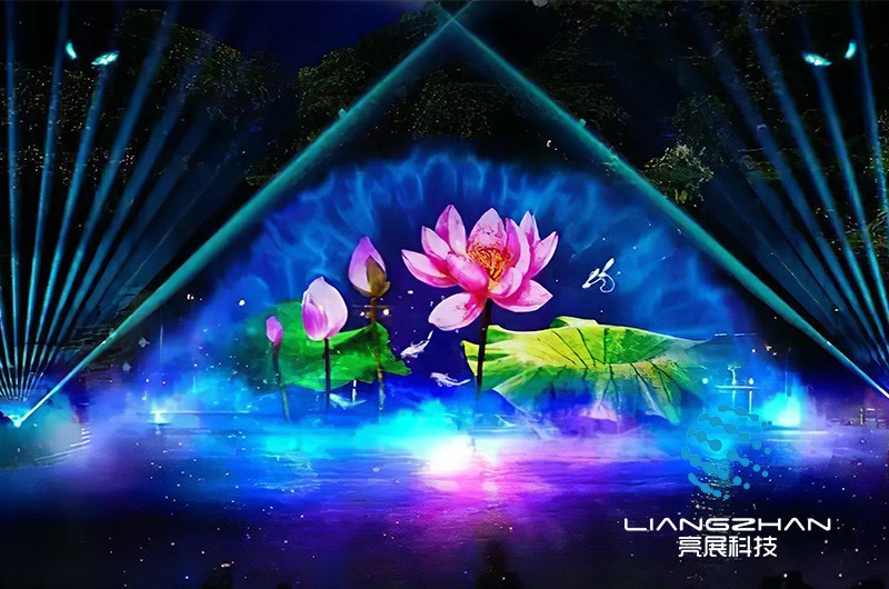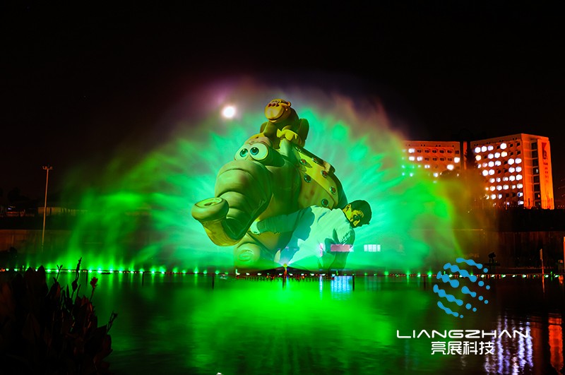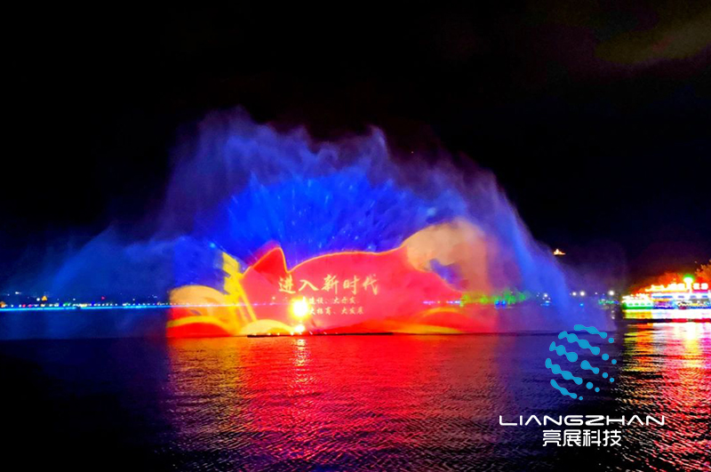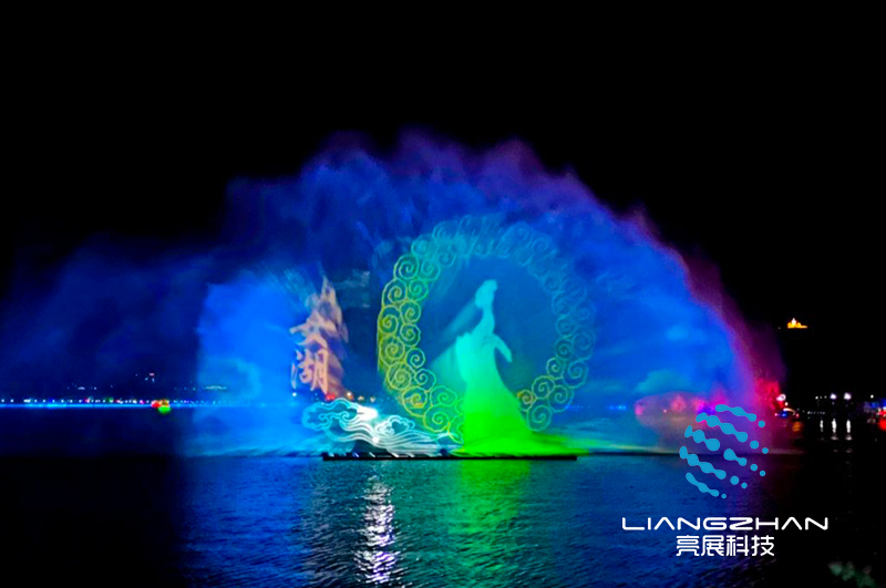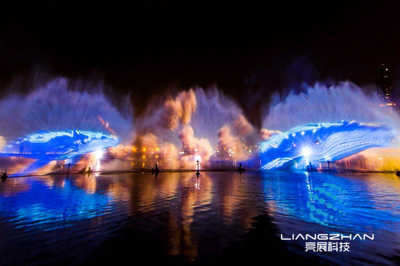 水幕投影,根據(jù)字面意思,就是在水幕或水簾上投射影像,形成斑斕奪目的奇異效果,給人以虛無(wú)縹緲的夢(mèng)幻之感。水幕投影場(chǎng)面宏大、氣勢(shì)磅礴,幾十米甚至上百米的水幕上,既能演繹人間美好、百物生靈,也能演繹廣褒的宇宙空間、遼闊的海疆山川。