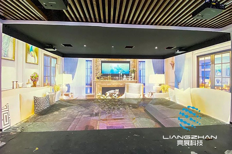 該系統(tǒng)可提供一個(gè)房間大小的四面(或六面)立方體投影顯示空間,供多人參與,所有參與者均沉浸在一個(gè)被立體投影畫面包圍的高級(jí)虛擬仿真環(huán)境中,借助相應(yīng)虛擬現(xiàn)實(shí)交互設(shè)備(如數(shù)據(jù)手套、力反饋裝置、位置跟蹤器等),從而獲得一種身臨其境的高分辨率三維立體視聽影像和自由交互的感受。由于投影面幾能夠覆蓋用戶的所有視野,所以CAVE系統(tǒng)能提供給使用者震撼性的身臨其境的沉浸式體驗(yàn)。