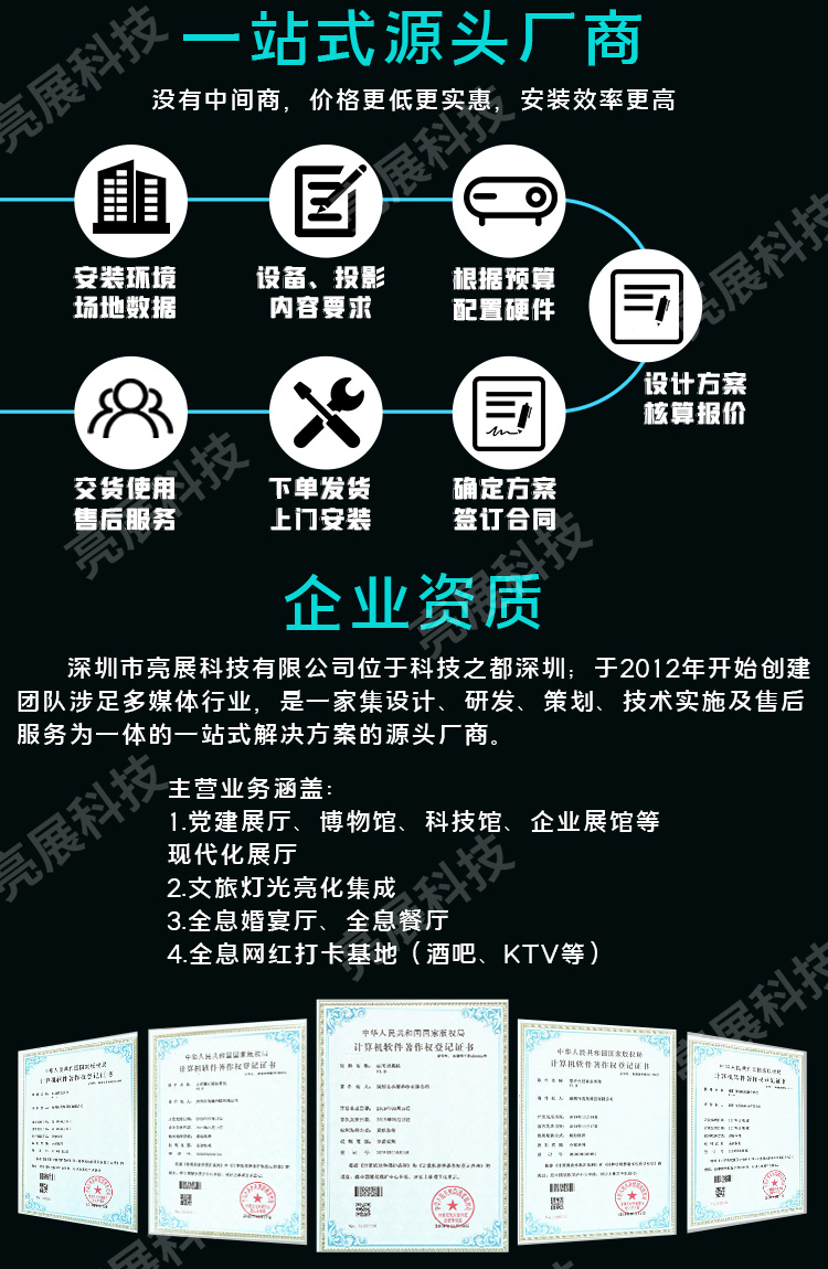 公司位于科技之都深圳;于2012年開(kāi)始創(chuàng)建團(tuán)隊(duì)涉足多媒體行業(yè),是一家集設(shè)計(jì)、研發(fā)、策劃、技術(shù)實(shí)施及售后服務(wù)為一體的一站式解決方案的源頭廠商,專業(yè)的軟硬件研發(fā)團(tuán)隊(duì)、追求創(chuàng)意的步伐贏得了眾多客戶的認(rèn)可。